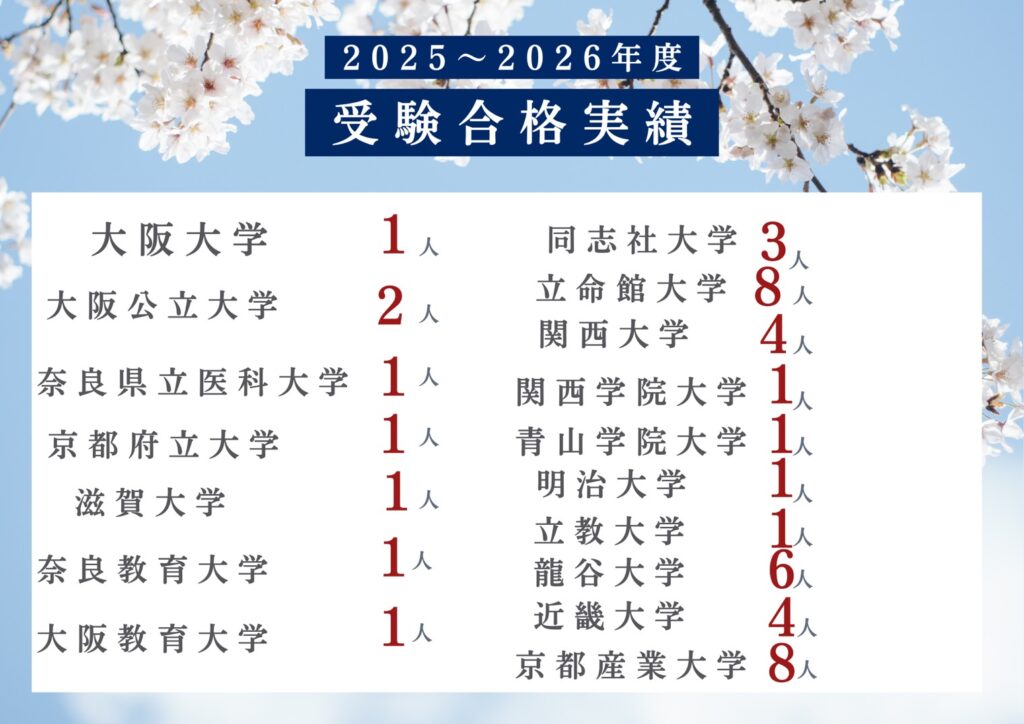 関関同立・早慶上智、国公立大学を目指すコースとなります。学習指導から、学習方法の提示まで包括的に大学受験をサポートします。